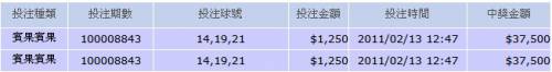 恭禧大大、賀喜大大!今天在投注站寫3個號碼!全中~可惜沒買!