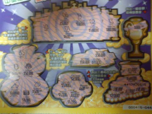 今天晚上去玩了一下鑽石,刮了9張都是烏龜想說湊10好了,沒想到中ㄌ2000元,想說沒輸贏就刮豬公,到ㄌ第9張中ㄌ1000元改玩連連發結果倒輸ㄌ1500元,真是氣人後來拿ㄌ黃金城第1張43號沒中