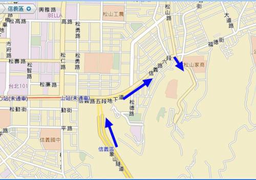 國五→ 國三→國三甲→信義快速道路→信義路六段→松山路(或直走福德街)→松山家商