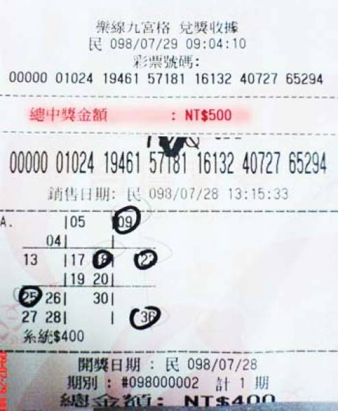 為啥怎麼看都是連成2條線,兌獎後卻是中500元? (雖然是蠻爽的啦, 哈~)