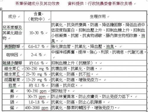 茶葉保健成分及其功效表
