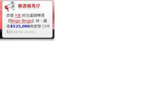 恭喜V女大大 中賓果5中5 525,000奧索幣