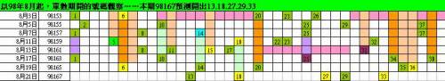 以7月起14開,下期開的號碼觀察......98166期14開,本期98167預測開09.11.15.18.23