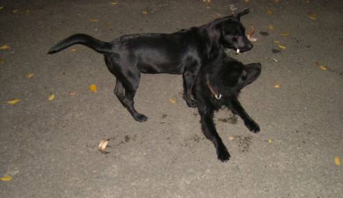 我們家的→大、小黑,只會為了爭食打架呀→↓