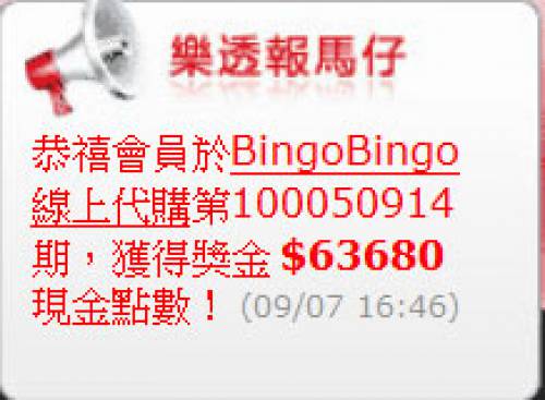 [分享] (09-07) 恭喜『BingoBingo線上代購』8星中7,四倍 $63,680 !!