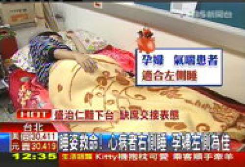 郭正典:「孕婦如果躺右邊的話,胎兒這麼大,子宮那麼大,壓到下腔靜脈,血流回不來,血回不來打出去的血就少,容易暈。」