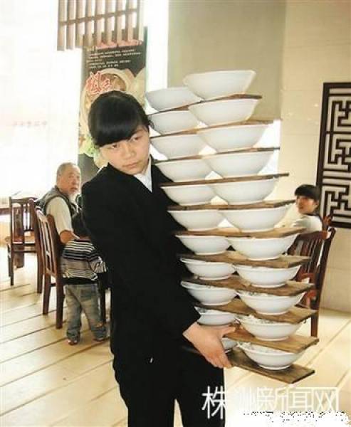 一次端22碗麵?這種聽起來不可思議的事情,對長沙24歲女孩黃萍來說卻輕而易舉,在餐廳擔任服務員領班的她,為了應付龐大的客流,常常一次就得端起22碗麵,碗碟得比她個子還要高,但她面不改色。