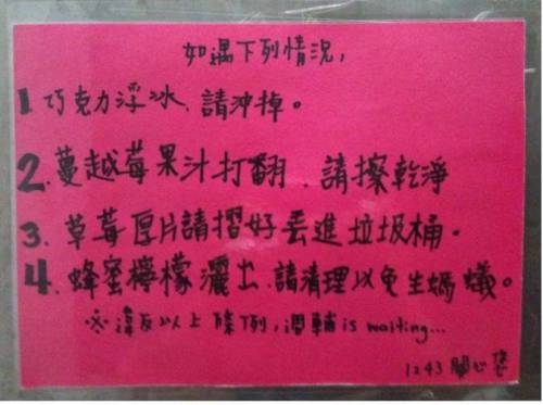 (2 )說:廁所風範可是咱們家的精神,就靠大家一起維護囉﹗