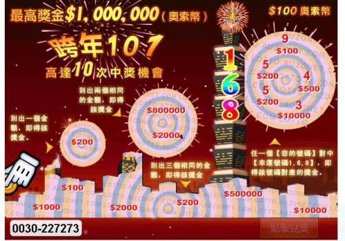 100元奧索幣刮刮樂的號碼0030-227273