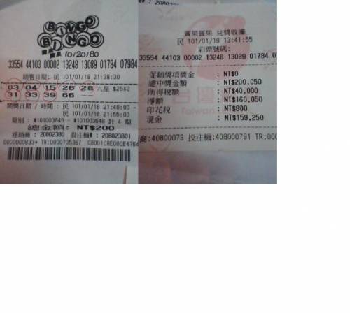 恭喜小弟 9中8 x2倍 實領 15萬9千2百元 !!