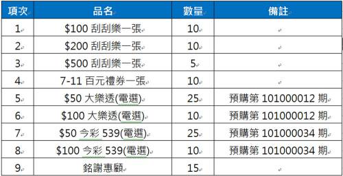 更正:獎品 $50及$100今彩539,皆是贈送預購第101000035期才是正確的唷