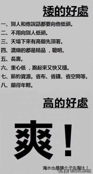 | [其它] (02-16) [趣味搞笑] 矮,有8大好處;高,卻只有一個好處XDD |