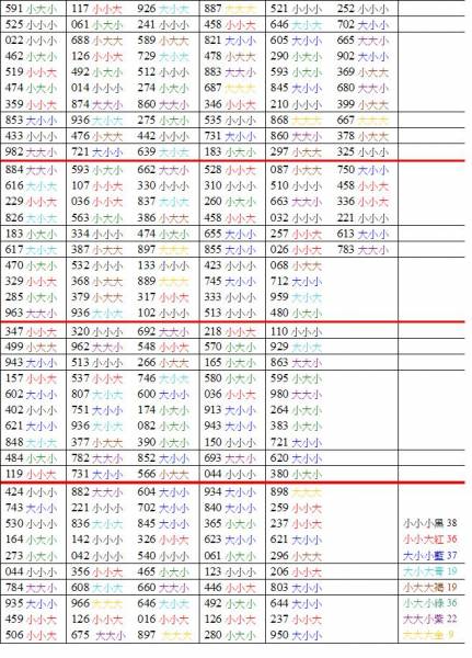 三星彩用刪去法來抓出可能的出牌機率~~(0~5是小6~9是大)