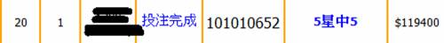 今早 10:30 第101010652期開出 5中5 投注20倍