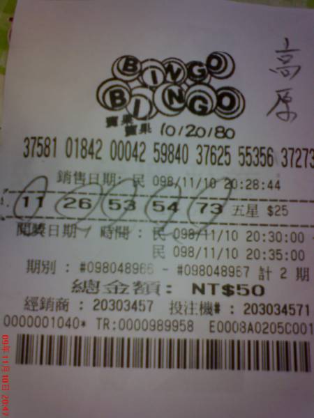 您說"天母哪家"(不是很奇眼)曾路過>買過電選("早知") 晚一點路過>買個 大樂透
