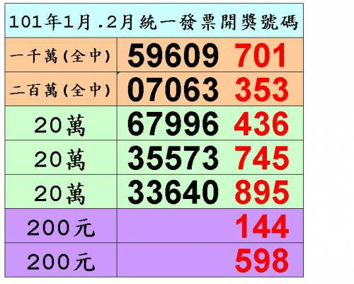 | [分享] (03-25) 來對獎囉~~統一發票101年1-2月中獎號碼 |