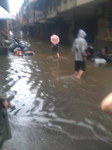 他們說23點時看到路面淹水道五分鐘就淹到50CM