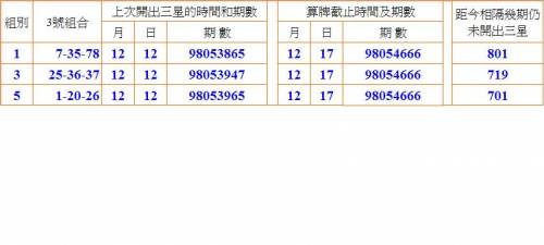 1.下面(表A)三組牌,請勿單期使用,應配合TACO版主的『投資三星倍率及適合之期數 』慎思後再行下注。