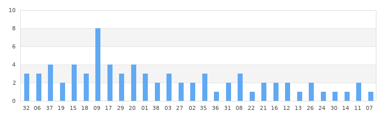 | 2025年 [ 05 ]號球開出的歷史記錄 |